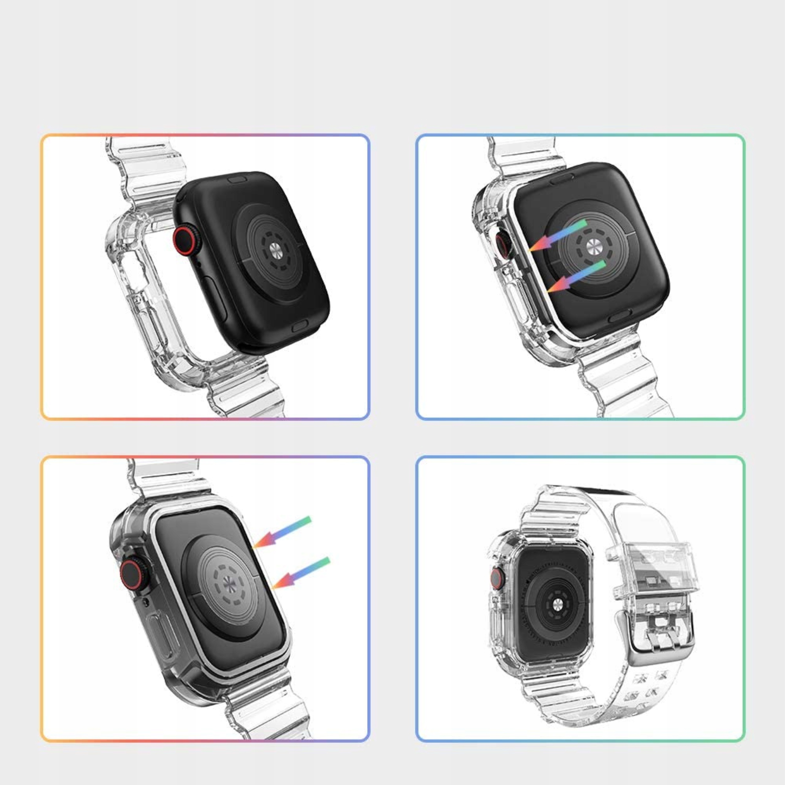, poleg enostavne namestitve in nastavitve, bo silikon, iz katerega je izdelan pašček , preprečil, da bi vam lasje vlekli roko, kar vas bo zaščitilo pred nelagodjem! Ovitek, ki je priložen kompletu, celovito ščiti uro pred poškodbami. Ovitek uporabnika med vsakodnevno uporabo nikakor ne omejuje. Izdelek bo zagotovo zadovoljil ljudi, ki jim je varnost zelo pomembna in se želijo izogniti morebitnim praskam ali poškodbam. Dizajn za vsako priložnost Zapestnica je zasnovana na osnovi vrhunskega silikona. Odlikuje jo lahkotnost in minimalizem. Zahvaljujoč kovinski zaponki z luknjico se pašček popolnoma prilega vašemu zapestju.