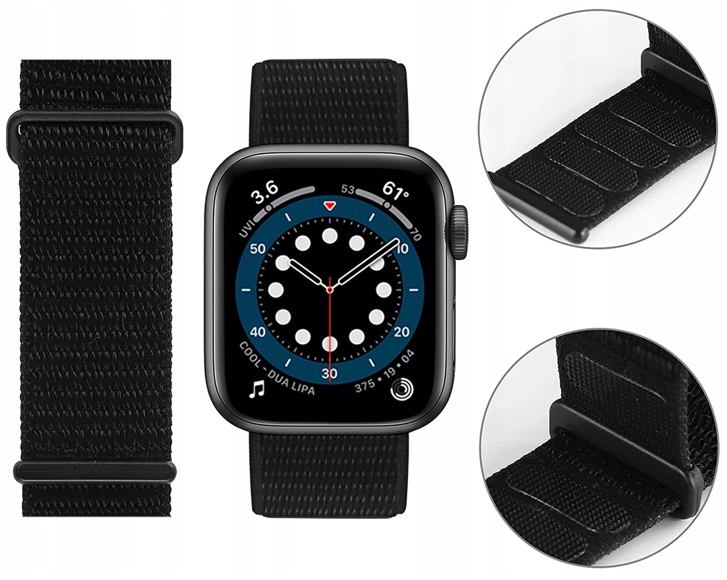 PASEK ZA APPLE WATCH 1/2/3/4/5/6/7/8/9/SE 38/40 MM ČRN MATERIAL Celoten opis