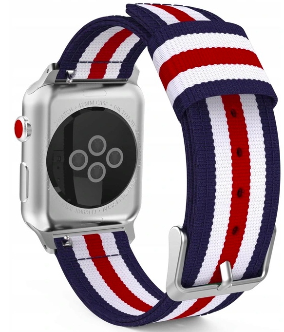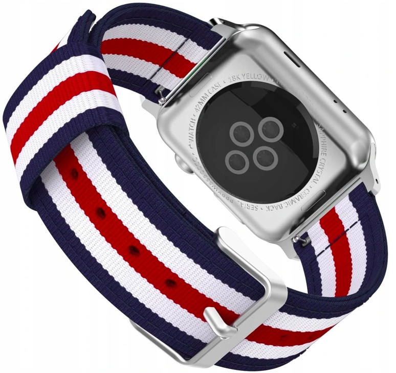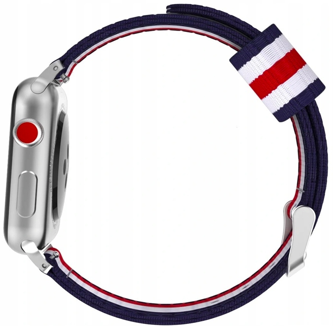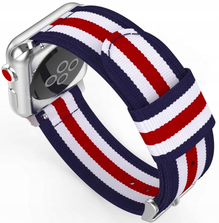 PASEK ZA APPLE WATCH 3 4 5 6 7 8 9 SE 38/40/41 MM RDEČ/BEL/TEMNO MODER Celoten opis