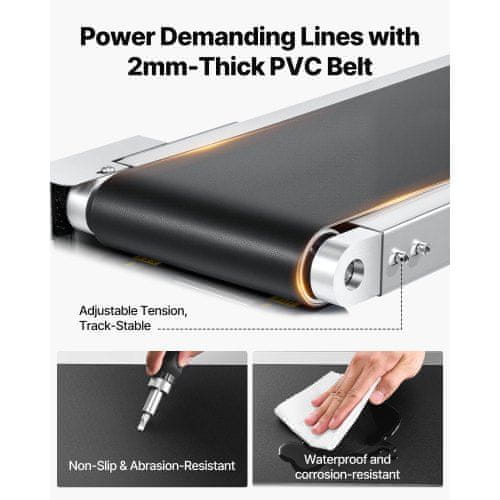 VEVOR Pasovni transporter z dvojno ograjo 1495x360x912 mm nastavljiva hitrost