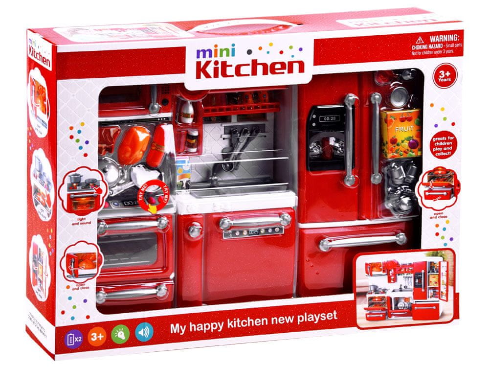 Fantastično razširjen set bo vsaki mali gospodinji zagotovil veliko ustvarjalne zabave, načrtovanje zabav, okraševanje stanovanja, skrb za urejenost je tudi na nek način učenje vsakdana. Komplet je v celoti izdelan iz plastike v rdeči in beli barvi s srebrnimi dodatki. Bogato oblikovan set bo omogočil veliko ustvarjalnega igranja. Celoten komplet je zapakiran v kartonasto škatlo, ki je kot nalašč za darilo.