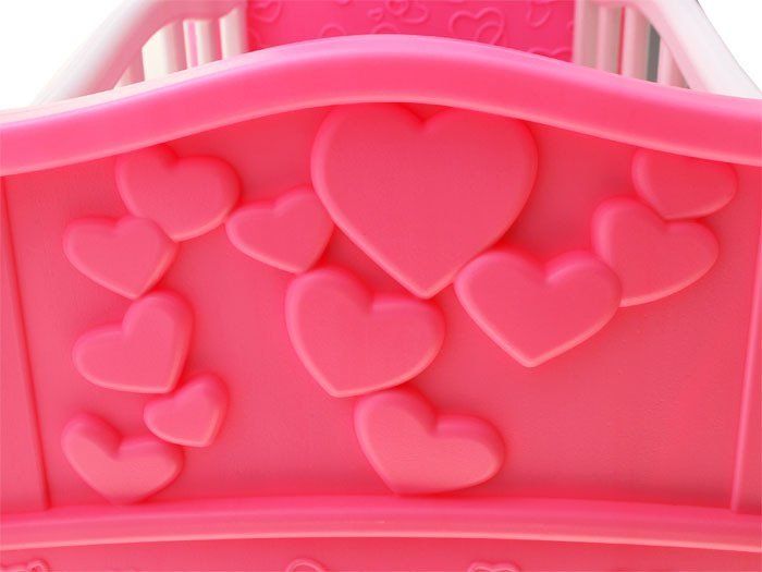 Zabavna zibelka, lepo okrašena z dodatki, je sanjski komplet za vsako bodočo mamico, starša. Zibelka je odlično izdelana iz plastike z reliefnimi vzorci. Poleg tega je zibelka opremljena s priloženim vrtiljakom in dodatki za hranjenje otroka. Celoten kompaktni komplet se bo dobro obnesel v vsaki otroški sobi. Ker je zibelka dolga, se vanjo lahko namesti lutka ali medvedek z višino do 45 cm!