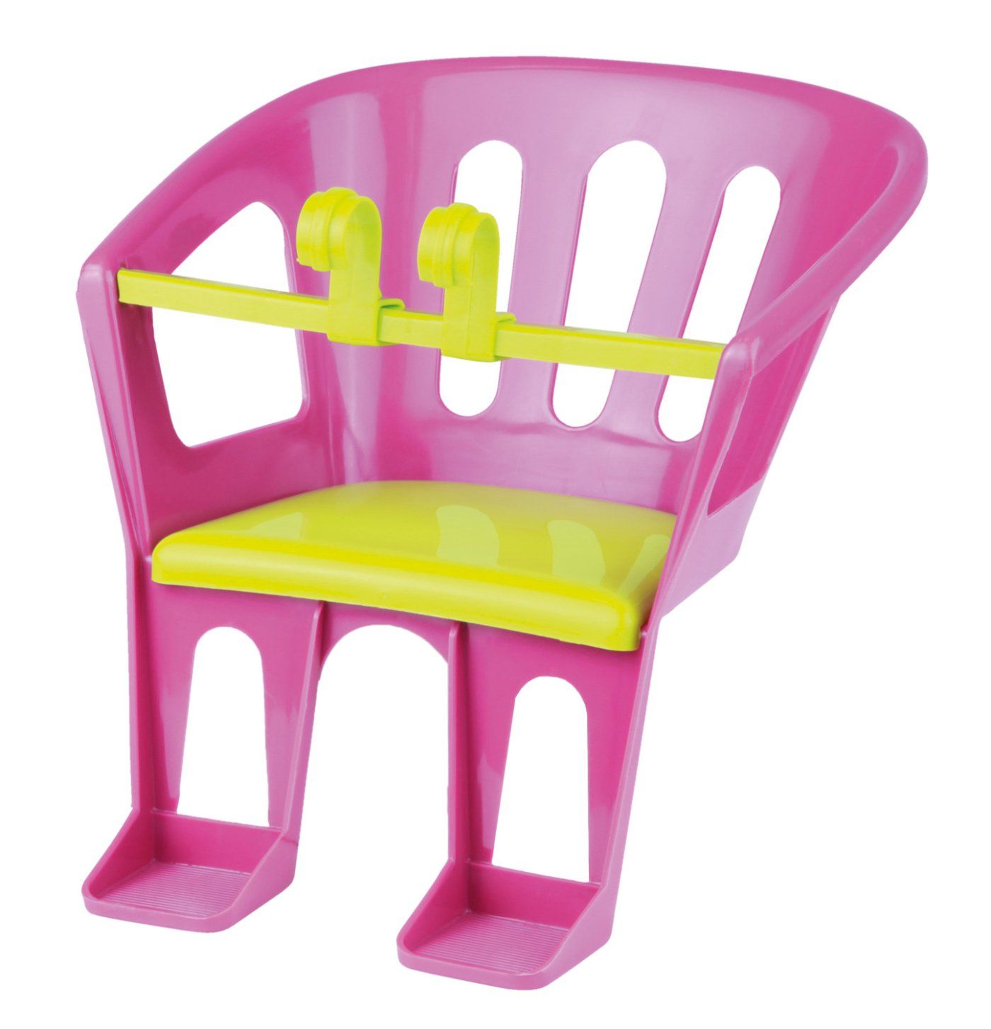 Sedež za kolo, zasnovan za lutko. Pritrjen s kavlji.