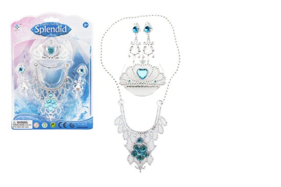 Vsaj majhna deklica si je zagotovo želela postati princeska. Komplet vključuje krono, ogrlico in uhane. Dimenzije paketa 18 × 25 × 4 cm. Primerno za otroke od 3. leta starosti dalje.
