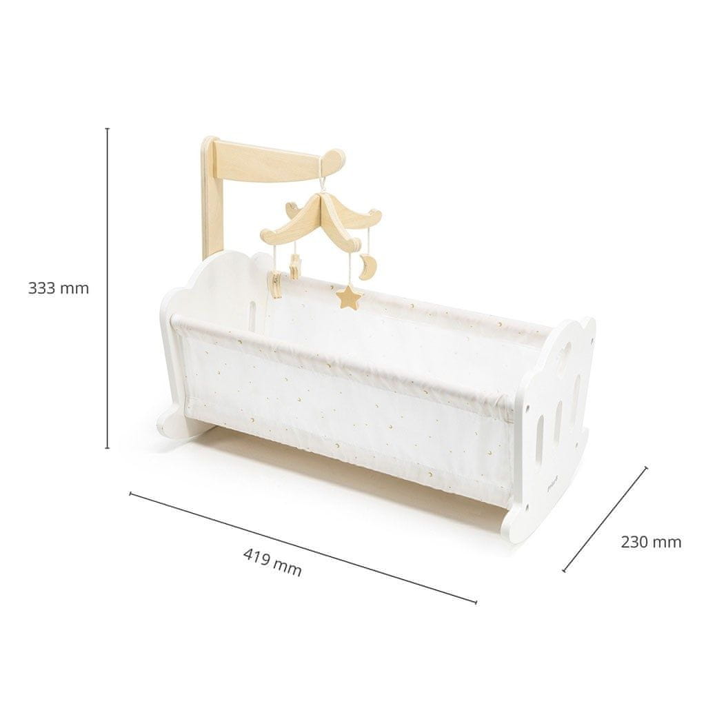 Drevesne jaslice služijo tudi kot prikupna posteljica za lutke. Otrokom omogoča, da posnemajo vsakodnevne aktivnosti pri negi in oskrbi. Otrok lahko v zibelko položi svojo najljubšo lutko ali plišasto žival ter jo pokrije s priloženo mehko odejo in blazino. Nad jaslicami je obešen lesen viseči vrtiljak, ki še poveča realističnost igre. Otrok lahko ustvarja različne zgodbe, povezane z nego lutke, kar razvija njegovo domišljijo, ustvarjalnost in posnemanje ter je odličen pripomoček za ustvarjanje raznolikih scenarijev igre, ki otrokom pomagajo, da se postavijo v vlogo skrbnika. Posteljica je primerna za lutke do višine 38 cm.