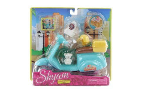 Komplet vključuje motor za lutko, čelado, medvedka in košarico. Material plastika. Dimenzije približno 32×29×9,5 cm. Velikost motorja 27 cm. Starost 3+
