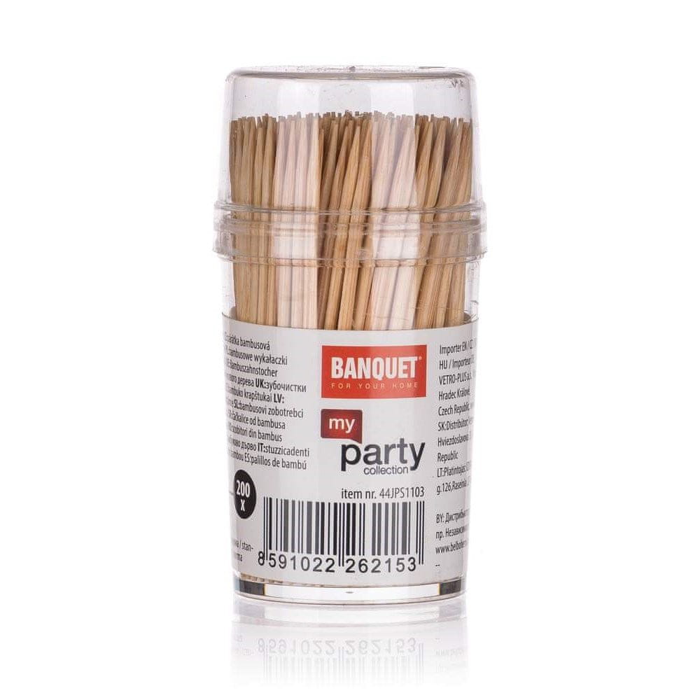 Zobotrebci v tubi 200 kosov Party Collection, obojestranski, material – bambus, dolžina 6,5 cm, plastična tuba z razpršilnikom.