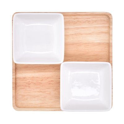 modularni pladenj duka je zasnovan tako, da omogoča udobno serviranje hrane ter ščiti mizno ploščo pred umazanijo in poškodbami. izdelan je iz svetlega gumijastega lesa, ki se odlično ujema s svetlo porcelansko posodo. Modularni pladenj se s svojo kvadratno obliko in velikimi dimenzijami odlično prilega krožnikom in skledam iz iste kolekcije, zato ga lahko razporedite na različne načine. En velik krožnik ali več skled z omakami? Izbira je vaša! Naj bo vaša kuhinja udobnejša in zaščitite površino mize pred poškodbami z duka modular!