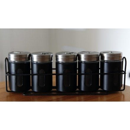 Posode za začimbe, najlažji način za shranjevanje in organiziranje začimb! Ta komplet vključuje pet posod za začimbe, ki se lepo prilegajo na stojalo, kar zagotavlja, da ne boste nikoli več izgubili svojih najljubših sestavin. Poleg tega njegov eleganten videz zagotavlja, da ni samo funkcionalen, ampak tudi dobro izgleda v vsaki kuhinji! Uživajte v preprostem dostopu do svojih najljubših začimb, shranjenih na enem priročnem mestu s tem stojalom za začimbe. Funkcionalna kuhinjska nuja – posode za začimbe s pokrovom, ki se lahko zaklene, in tremi različnimi cedili, ki olajšajo shranjevanje, začinjanje ter uporabo soli in popra. Zahvaljujoč tem posodam za začimbe lahko vsak v kuhinji poenostavi in pospeši pripravo hrane. Iz nerjavečega jekla in stekla. Skupna višina: 8,9 cm. Širina: 5,9 cm. Dolžina: 26,2 cm. Število posod: 5 kosov.