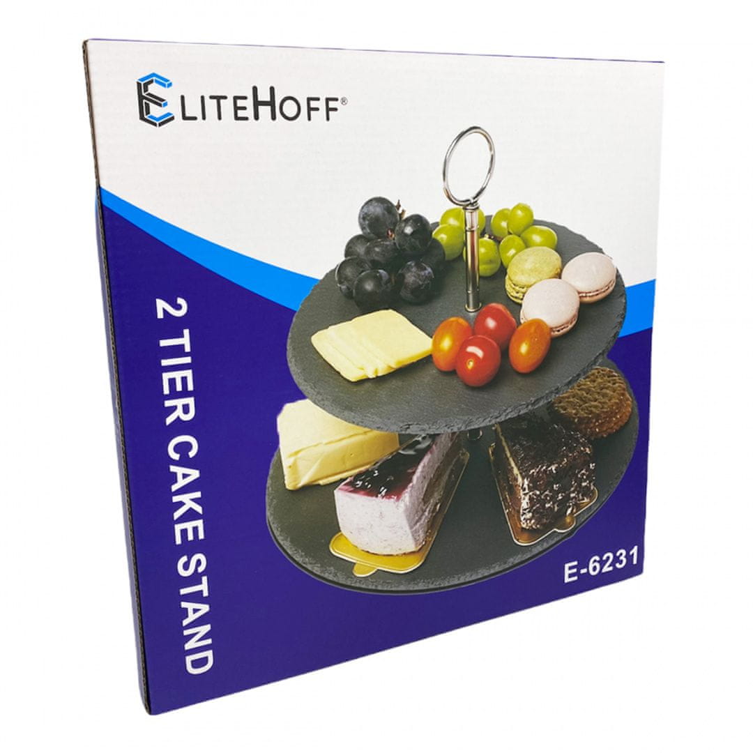 Dvonadstropni krožnik za pecivo, sadje in prigrizke iz skrilavca