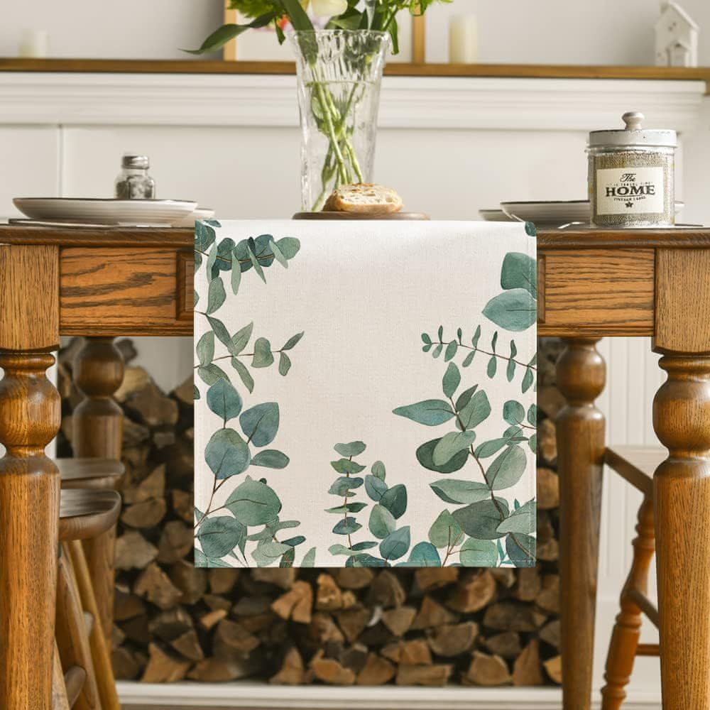Letni namizni tekač Evkaliptus za kuhinjo in dnevno sobo 40×300 cm