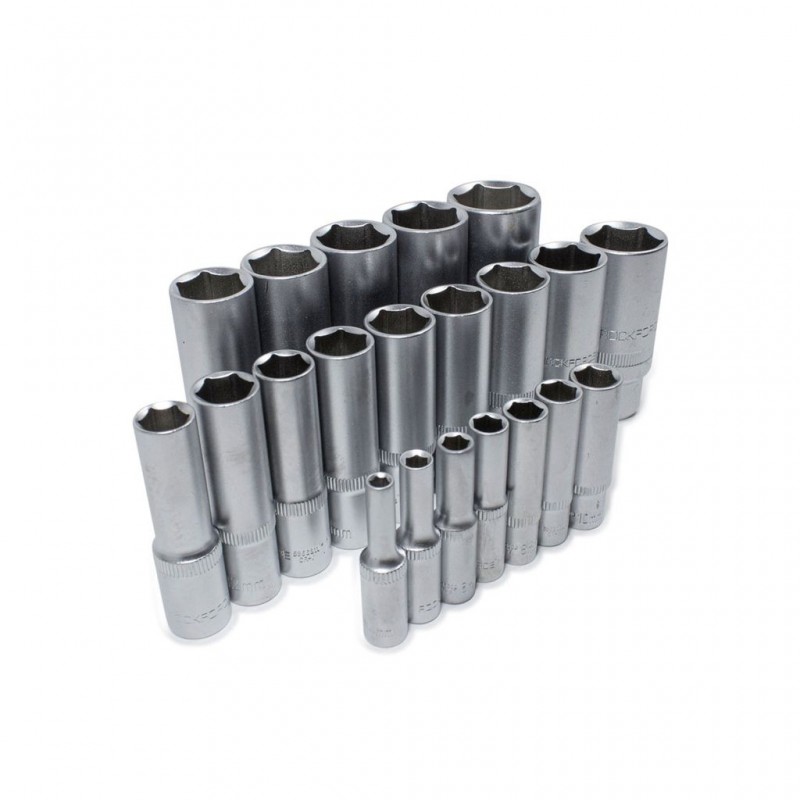 • 3/8" nastavki (12 kat.): 10; 11; 12; 13; 14; 15; 16 mm, D= 28 mm; 17; 18; 19 mm, D= 30 mm