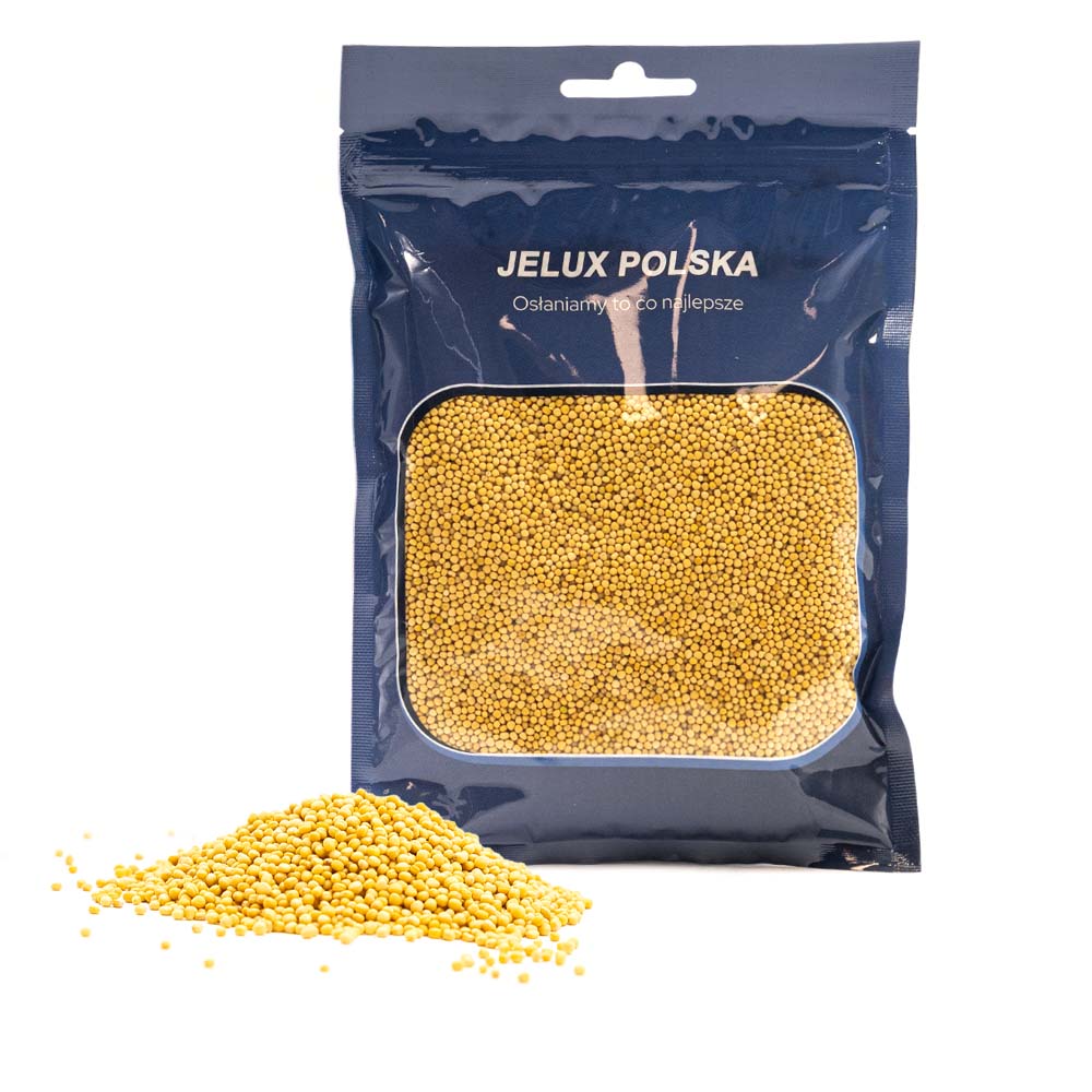 Belo gorčično seme – navdušuje z rahlo sladkastim in hkrati rahlo pikantnim okusom . Odlično se poda k vsem vrstam marinad, pikantnim omakam , kumaricam, pa tudi za začinjanje mesnih jedi, juham in narezkom . Bela gorčica je nepogrešljiv dodatek pri vlaganju kumar ali zelja. Prav tako je dobro za pripravo orientalskih , indijskih jedi . Indijci cvrejo semena, dokler ne počijo in dobijo prijeten, rahlo oreščkast vonj. Gorčična semena, pripravljena na ta način, dopolnjujejo mešanice začimb, ki jih ustvarijo. Zahvaljujoč celim gorčičnim semenom jedi dobijo intenziven okus.