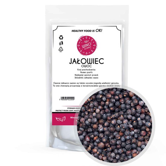 Brin Brinove jagode so odlične za aromatiziranje piva in drugih alkoholnih pijač. So dober dodatek zeliščnim kisom, začimbam za divjačino ali divje ptice. Odlično se podajo k pečenkam, dušeni zelenjavi ali solatam. Uporabljajo se lahko tudi v paštetah. Parametri: Država porekla: Severna Makedonija Barva: temno rjava do temno modra Aroma: značilna, brez tujih vonjav Okus: značilna, brez tujega priokusa Videz: delno posušen, prožen sadež Pogoji skladiščenja: suhi prostori, relativna vlažnost do 75 %, temperatura največ 25 °C, zaščiteno pred svetlobo Embalaža: prozorna vrečka DOYPACK z zadrgo Vrečka Doypack: Laserska perforacija Lasersko perforirana linija z Easy Open omogoča enostavno odpiranje embalaže v ravni črti. Zadrga Odpiranje z zadrgo omogoča večkratno odpiranje in zapiranje. Funkcionalno, zlasti za izdelke v razsutem stanju. Enostavno odpiranje. Reža za enostavno odpiranje.