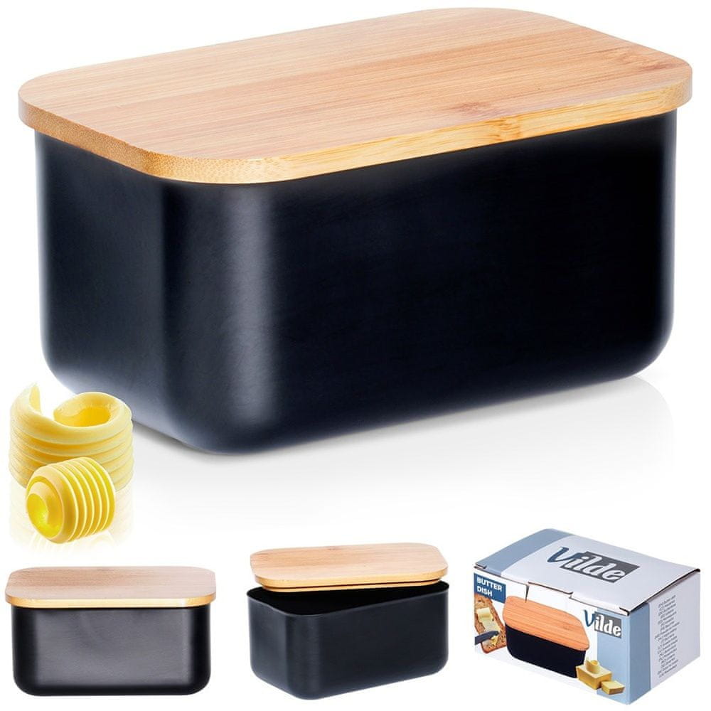 Črna jeklena posoda za maslo z bambusovim pokrovom Celoten opis