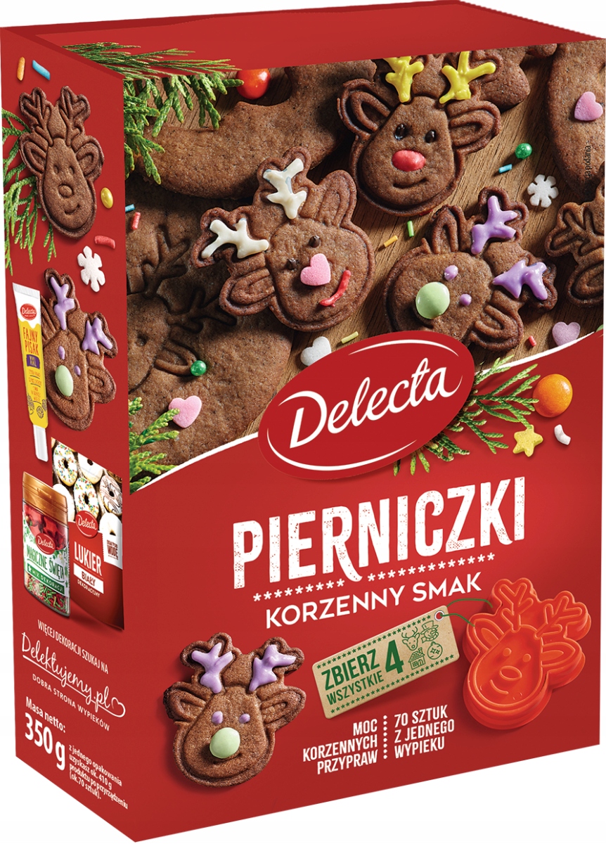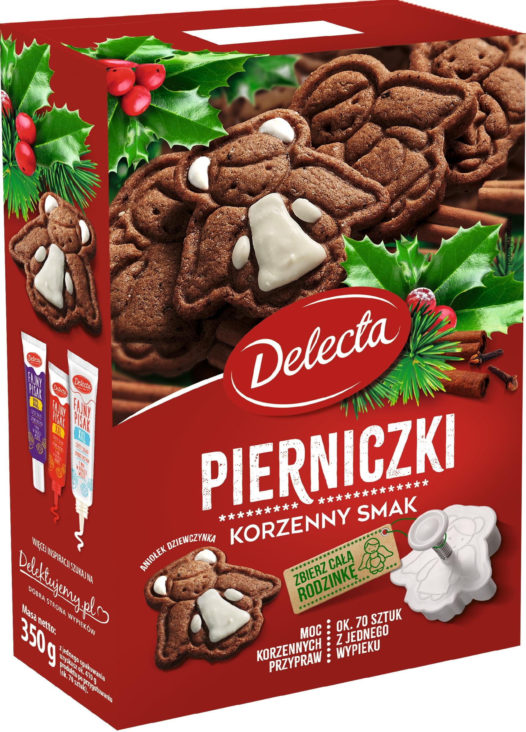 Medenjaki Delecta bodo zaradi aromatične mešanice cimeta, klinčkov in koriandra vsak dom napolnili z aromo tradicionalnih, pikantnih medenjakov. Priloženi žig vam omogoča, da iz ene same serije testa izrežete približno 70 piškotov. Za hitro in enostavno pripravo aromatičnih, tradicionalnih medenjakov preprosto dodajte osnovne sestavine (eno jajce in maslo ali margarino) v embalažo.
