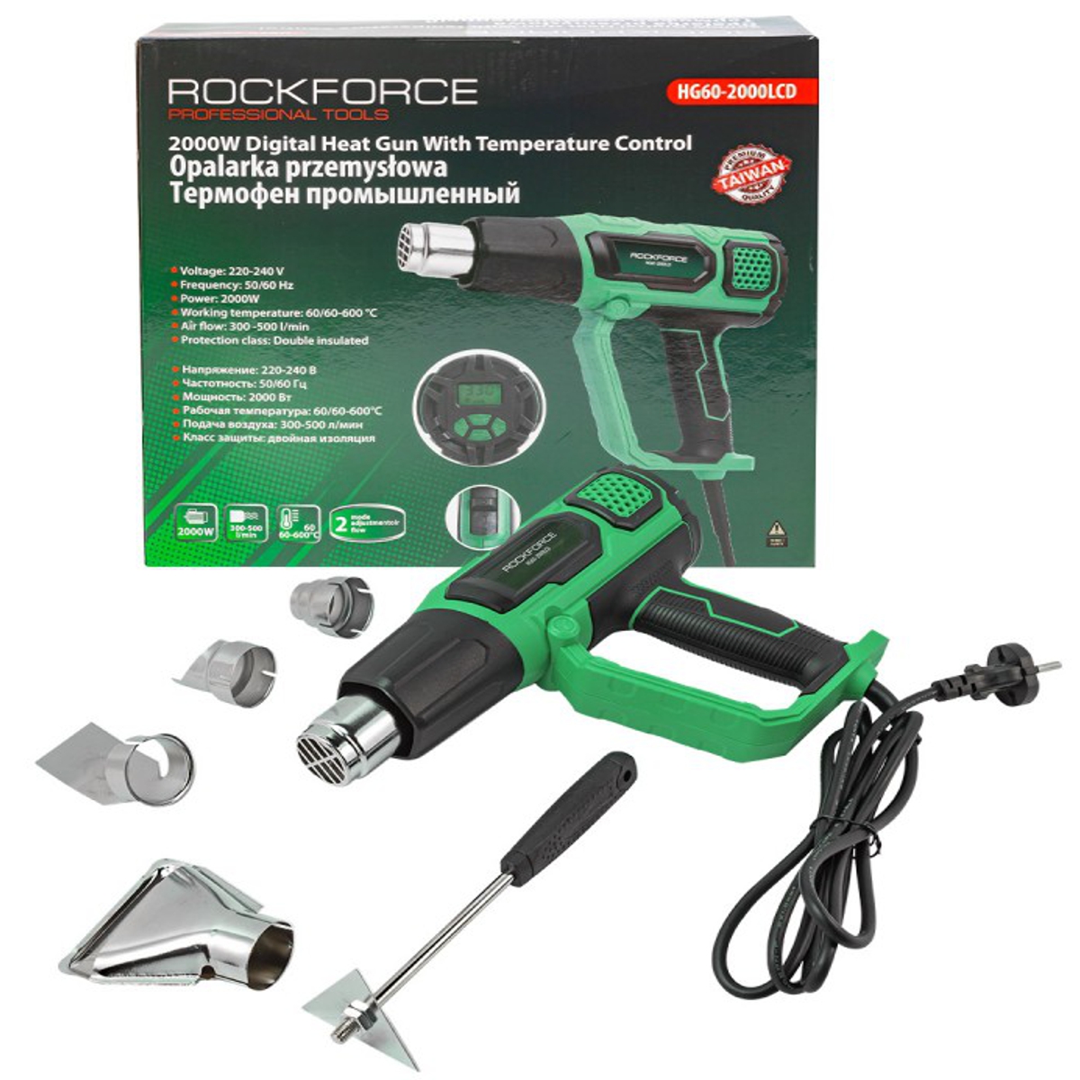 Električna toplotna pištola 2 hitrosti 4 šobe 600C 2000W Celoten opis