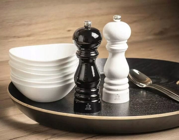 Mlinčki za poper Peugeot Paris so mešanica modernosti in klasičnega sloga, ki odraža bogato zgodovino blagovne znamke na področju mlinarstva. Njihov eleganten sijajno črn videz doda čar vsaki kuhinji, hkrati pa ohranja originalne podrobnosti, ki so zaščitni znak Peugeota.