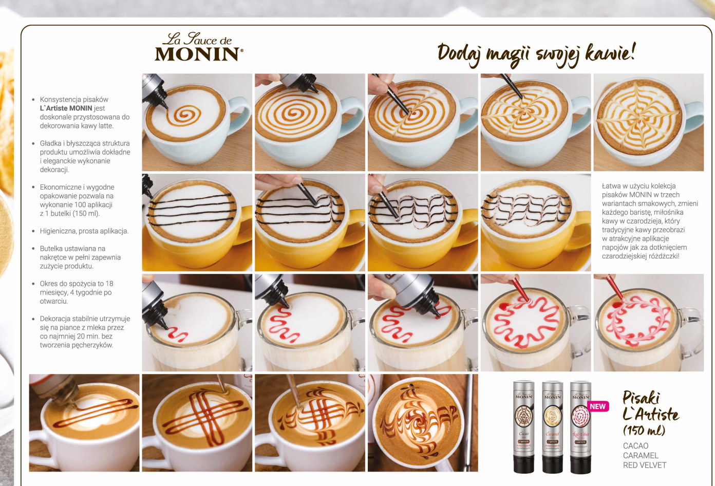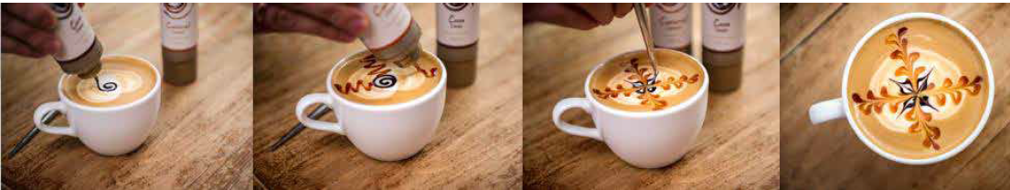 Zahvaljujoč priročni in higienski tubi z dozirnikom in pravo konsistenco okrasitev klasične latte latte še nikoli ni bila tako enostavna!