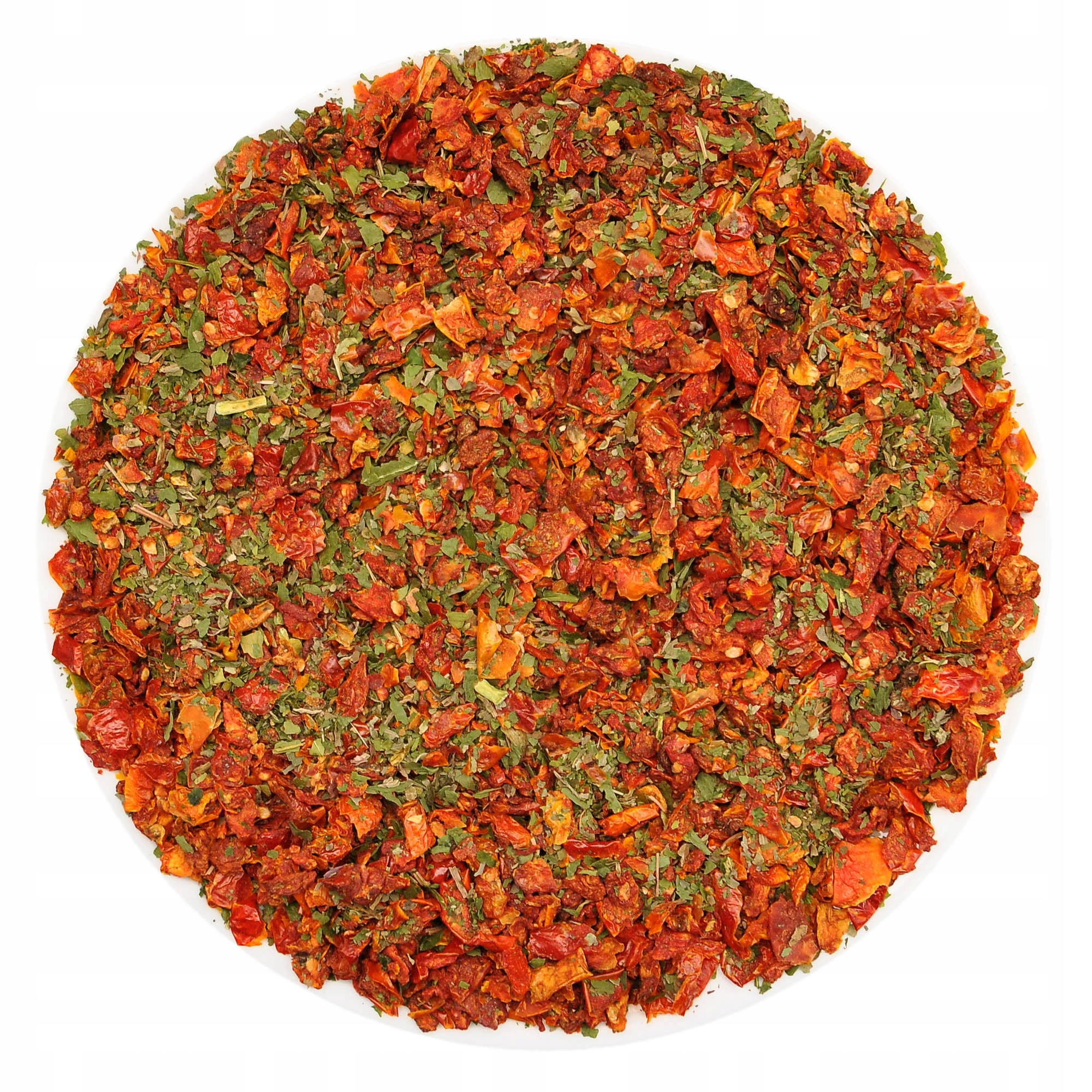 Edinstvena mešanica na osnovi suhih paradižnikov. Intenziven okus paradižnika je izravnan s pridihom česna in bazilike. Njegov privlačen videz (rdeči trakovi posušenih paradižnikov, kremasti koščki posušenega česna in ščepec temno zelene posušene bazilike) ni vse. Ta začimba ima širok spekter uporabe. Še posebej se priporoča k sredozemskim jedem. Odlično se poda k dušenemu mesu, omakam, enolončnicam, pa tudi k jutranjim toastom in umešanim jajcem.