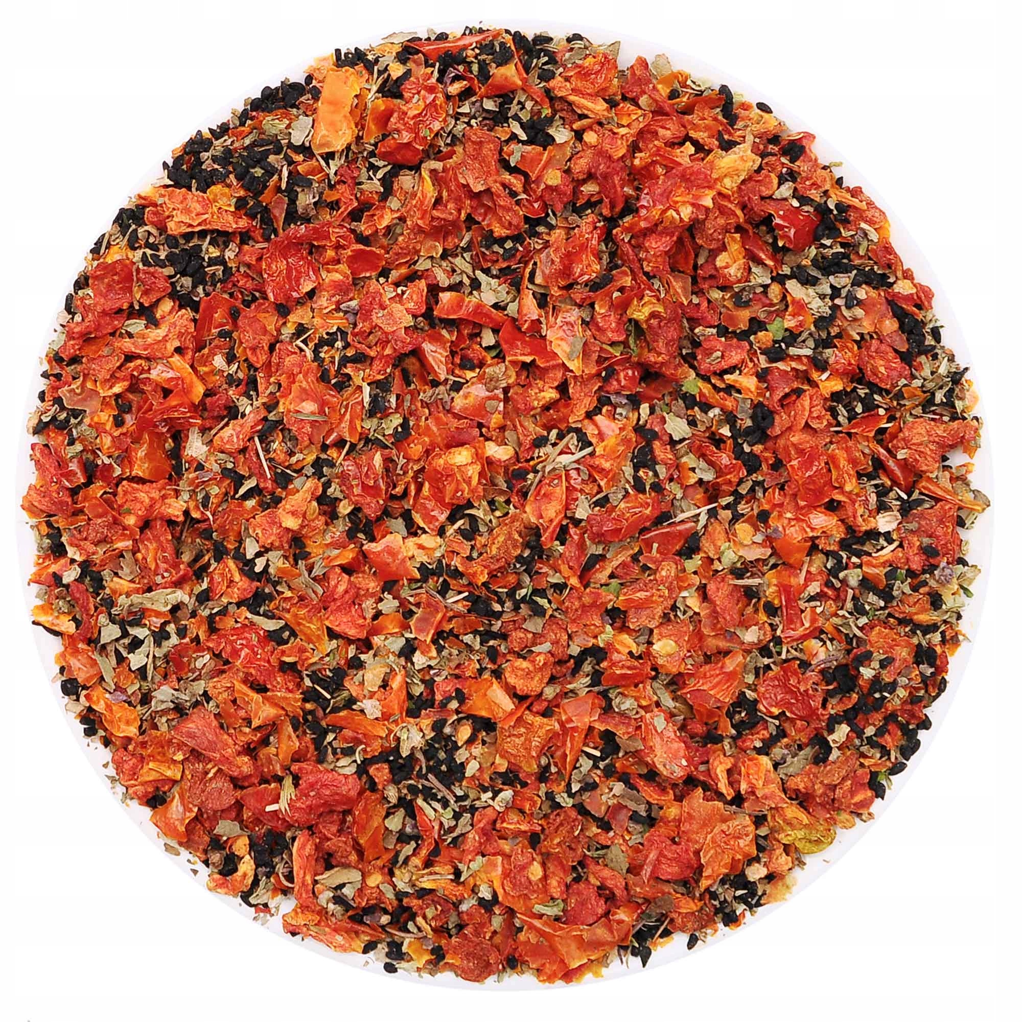 Paradižnik s črno kumino in divjim česnom je začimba, ki ne izstopa samo po intenzivnem okusu s sladko paradižnikovo noto, ampak je tudi lepega videza in ne vsebuje soli. Sestava rdečega paradižnika in zelenega česna ustvari čudovit mozaik na površini mesa ali v solati.