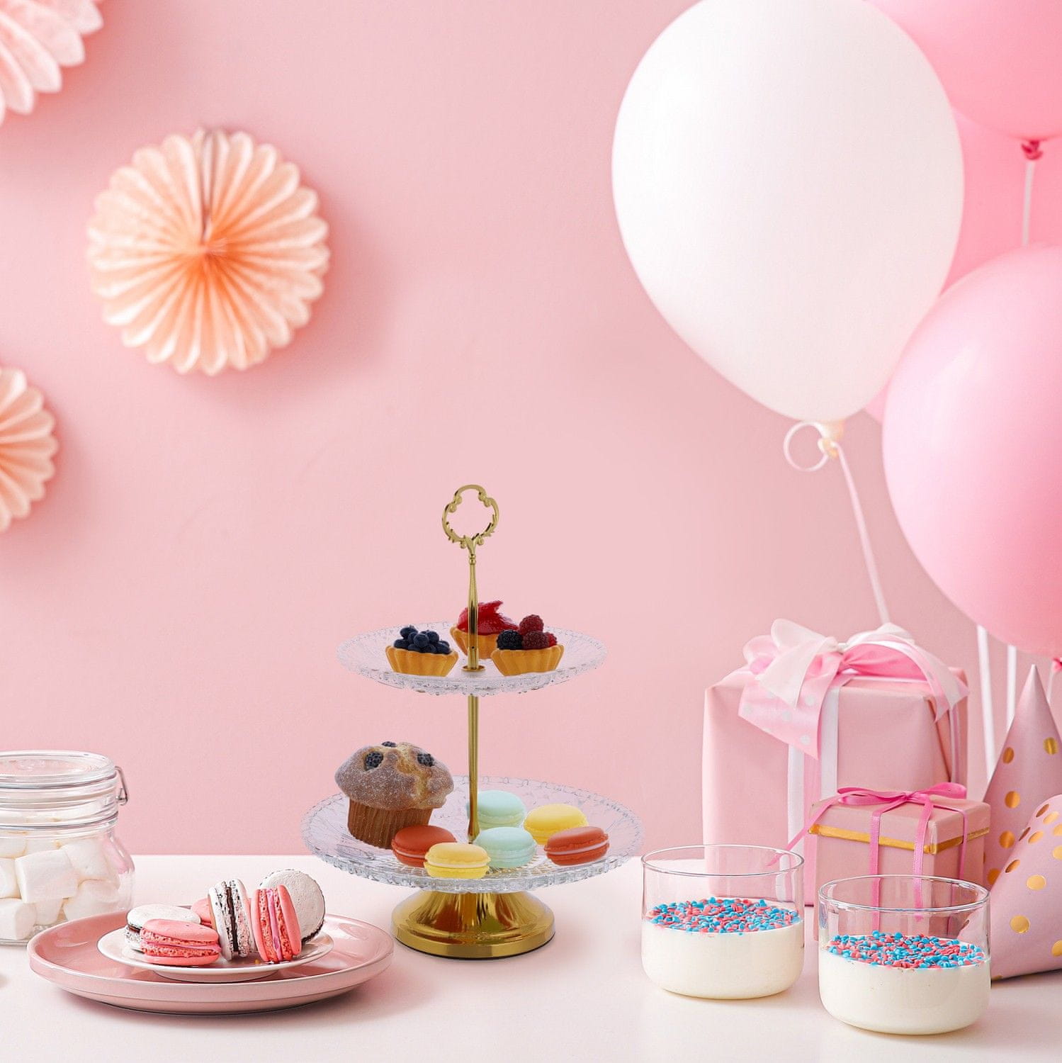 • Razstavite torte, čokolade in mafine na dveh okroglih nadstropjih.