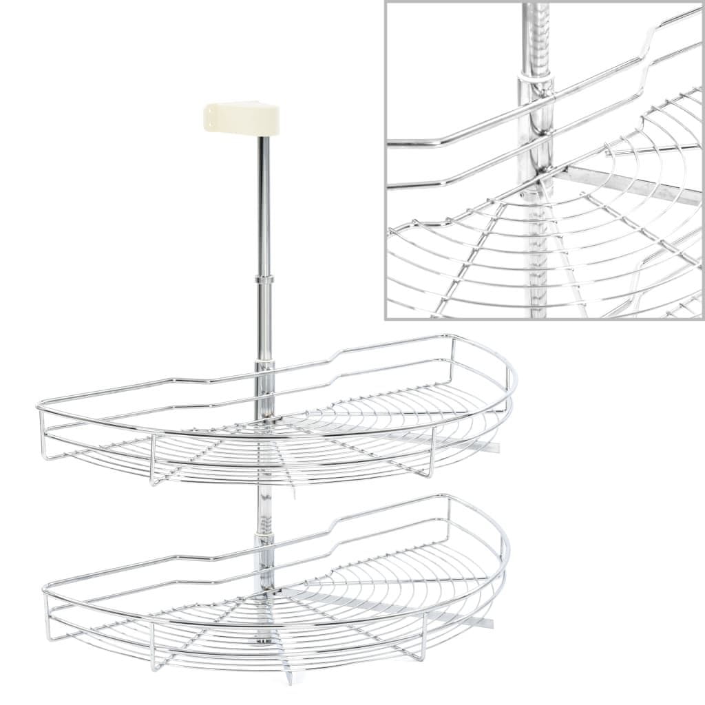 Vidaxl Kuhinjska košara 2-nadstropna srebrna 180 stopinj 75x38x80 cm