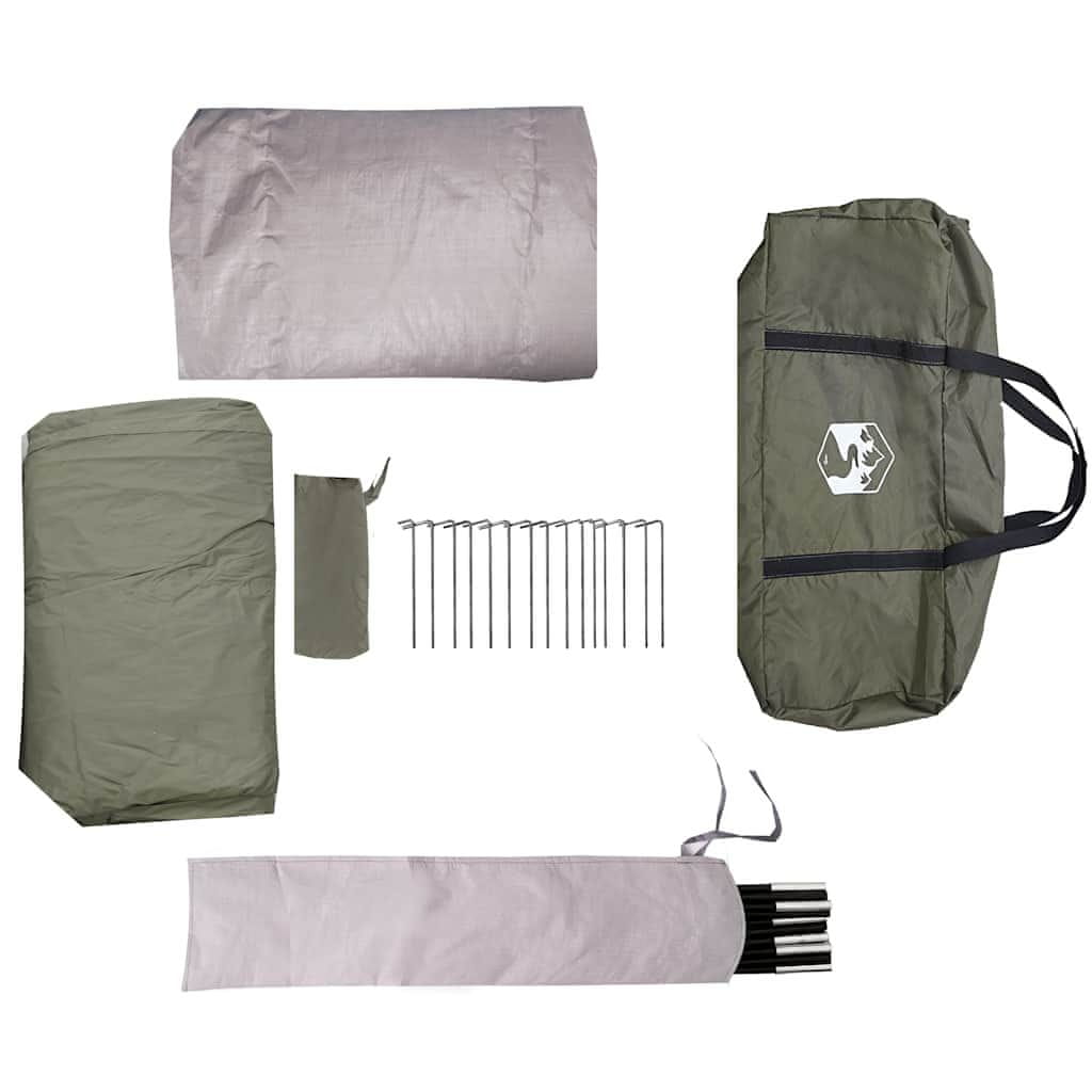 • Vsestransko vodoodporna zasnova: Ta šotor za kampiranje, izdelan iz poliestra s PU prevleko, je vodoodporen in odporen na veter. Lepljeni šivi učinkovito preprečujejo pronicanje deževnice, trpežna podloga pa pomaga ohranjati suho in udobno notranjost.