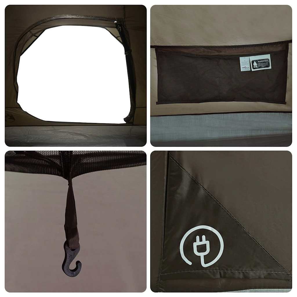 • Priročen dostop do električnega kabla: E-port vam omogoča, da podaljšek iz zunanjega vira napajanja enostavno priključite na šotor.