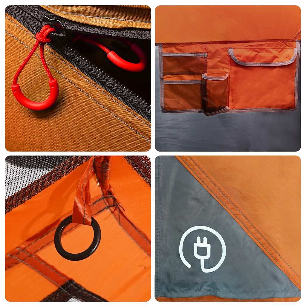 Vidaxl Šotor za kampiranje za 10 oseb siv in oranžen vodoodporen