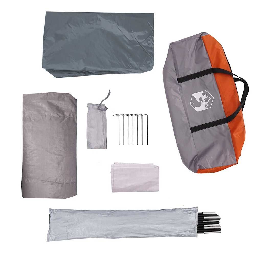 Vidaxl Šotor za kampiranje za 4 osebe siv in oranžen vodoodporen