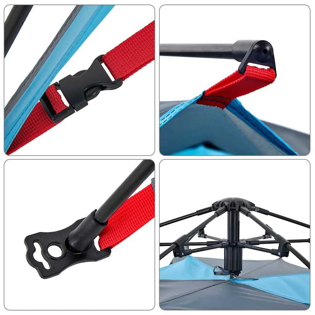 • Sistem hitre postavitve: Šotor brez težav postavite s sistemom za hitro postavitev! Postavite šotor, raztegnite vnaprej sestavljene palice, dokler se ne zaskočijo, in vse je pripravljeno!