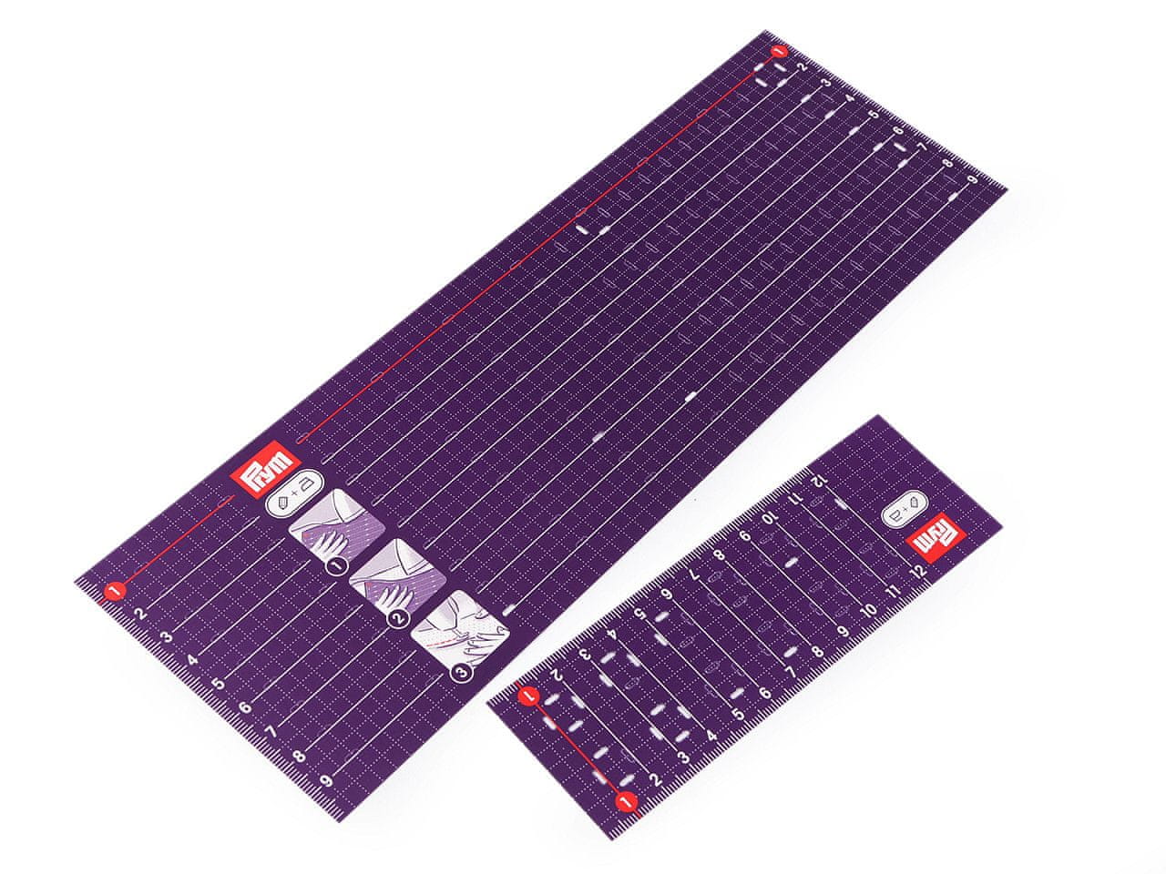 Univerzalno ravnilo Prym omogoča enostavno likanje in pripravo šivov, robov in pregibov brez zapletenega merjenja in označevanja. Je obojestransko. Ena stran je idealna za krajšanje robov na rokavih in nogah, druga pa za dolge ravne robove. Pravilo je odporno na vročino in ga lahko večkrat uporabite. Pakiranje vsebuje 2 ravnila – veliko, ki meri 10 × 30 cm, in manjše, ki meri 5 × 15 cm.