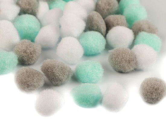 Pisana mešanica pomponov je vesela in igriva.Uporaba: S pomponi lahko okrasite klobuke, puloverje, šale, jopice, puloverje ali torbice. Primerne so tudi za izdelavo ogrlic, uhanov ali obeskov za ključe in mobilne telefone.