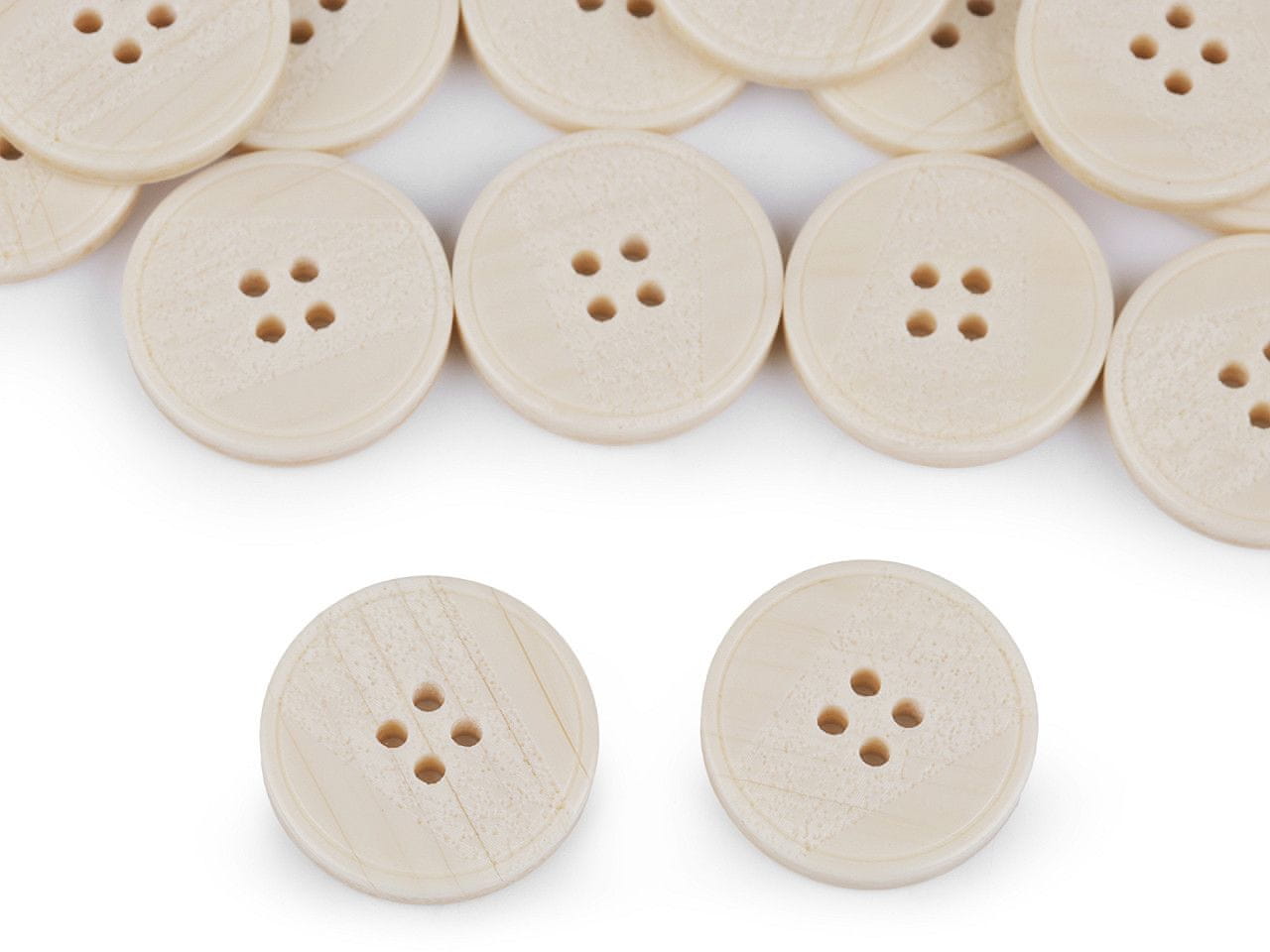 Gumbi s štirimi luknjicami so delno lasersko gravirani. Celoten opis