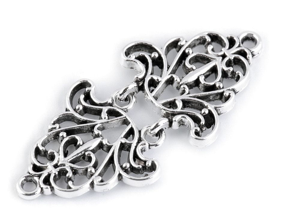 Okrasna zaponka s filigranskim motivom je sestavljena iz dveh nasprotnih delov, enega z dvema kaveljčkoma in drugega z dvema očescema.Uporaba: Uporabite jo lahko na torbicah, bluzah ali suknjičih, lahko pa jo uporabite tudi za izdelavo elegantnega pasu.