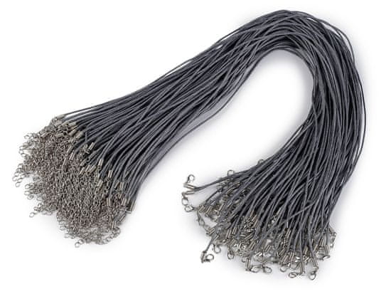 Bombažne vrvice, ki so površinsko obdelane z voskanjem. Na voljo so v veselih barvah in s priloženim zaključenim zapenjanjem. Vse, kar morate storiti, je, da obesek nanizate, in že lahko greste. Seveda je temu končnemu izdelku priložen tudi podaljšek verižice. Dolžina 45 cm + 5 cm verižice za nastavitev. Karabin 7 × 12 mm, premer vrvice 1,5 mm.