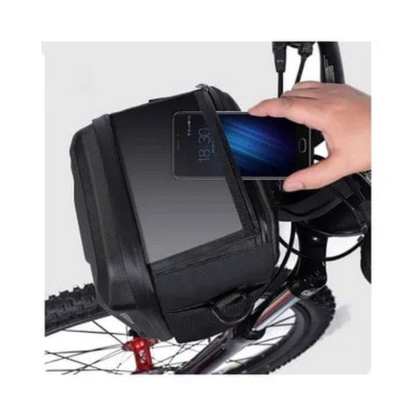 Vodoodporna torba znamke WildMan je popoln pripomoček za vsakega ljubitelja dveh koles. Izdelan s pozornostjo do detajlov iz visokokakovostnih materialov (eko usnje + EVA + TPU), zaradi česar je trpežen. Prozorno okence omogoča uporabo pametnega telefona ali navigacije, zahvaljujoč traku pa lahko hitro postane torba za čez ramo. Zaradi velike prostornine in trdega ohišja je torba idealna za shranjevanje in zaščito predmetov med vožnjo ter tako zaščiti prenašane pripomočke v primeru trka ali padca kolesa na bok. Torba je nameščena na krmilo z ročajem Quick-release, odsevni logotip pa zagotavlja varnost ponoči.