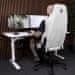 Praktično jekleno držalo za slušalke za namestitev pod igralno mizo v elegantnem belem dizajnu.