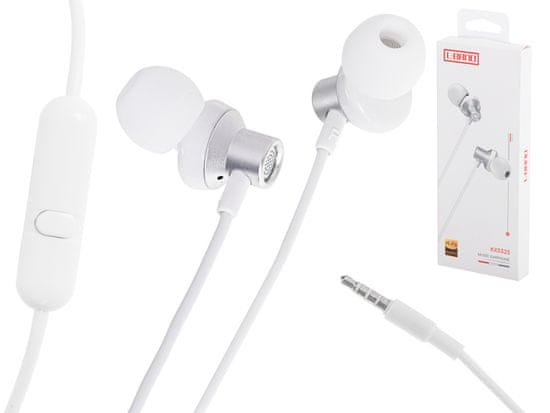 WOWO Bele žične slušalke z vtičnico - L-BRNO bele žične slušalke s 3,5 mm vtičnico