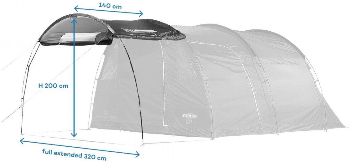 Dodatna tenda podjetja Ferrino za združljivost s šotori Fenix 5 / Meteora 5 in Chanty 5 Deluxe. Za lahko povečanje bivalnega prostora družinskih šotorov. Celoten opis
