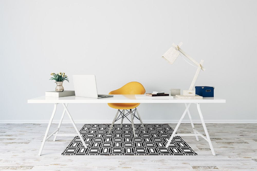 Preproga za pod stol je zanimiva rešitev za sobo s pisarniškim stolom. Talne obloge se zelo hitro opraskajo in pokvarijo pod vplivom mehanskih dražljajev, kot je prestavljanje stolov na kolesih z mesta na mesto. Na tem mestu je dobro zaščititi ranljiva tla in jim zagotoviti dodatno zaščito. Zaščitna podloga za stol Geometric pattern bo zanimiva alternativa tradicionalni preprogi, ki se ne obnese najbolje v sobi alergikov. Zaradi gladke površine brez ščetin se prah in umazanija ne usedata tako zlahka.