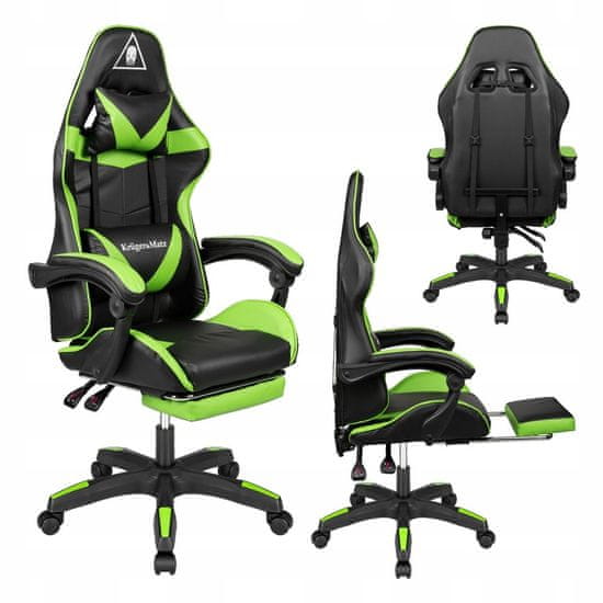 Krüger&Matz Nastavljiv oblazinjen igralni računalniški stol z oporo za noge GX-150 črno-zelen