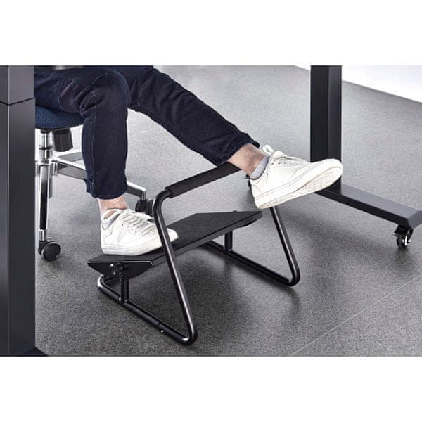 Nihajoči podstavek pod nogami sili k aktivnemu sedenju in spodnji udi niso v togem položaju. Podpira vensko vračanje krvi v srčno mišico. Podstavek je nastavljiv po višini, njegova oblika pa omogoča iztegovanje nog. Naj bo vaša seja čim bolj udobna.