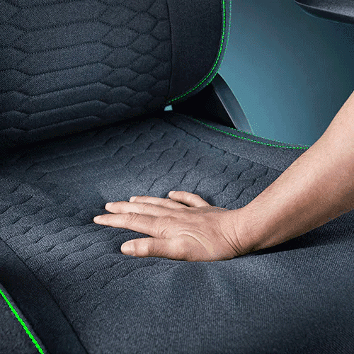 Sedež je oblečen v zračno, večplastno in mehko tkanino, ki je hladna do kože in mehka na otip.
