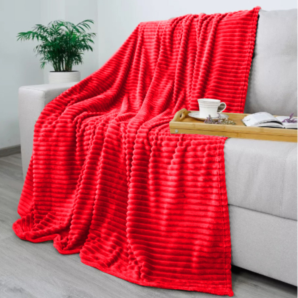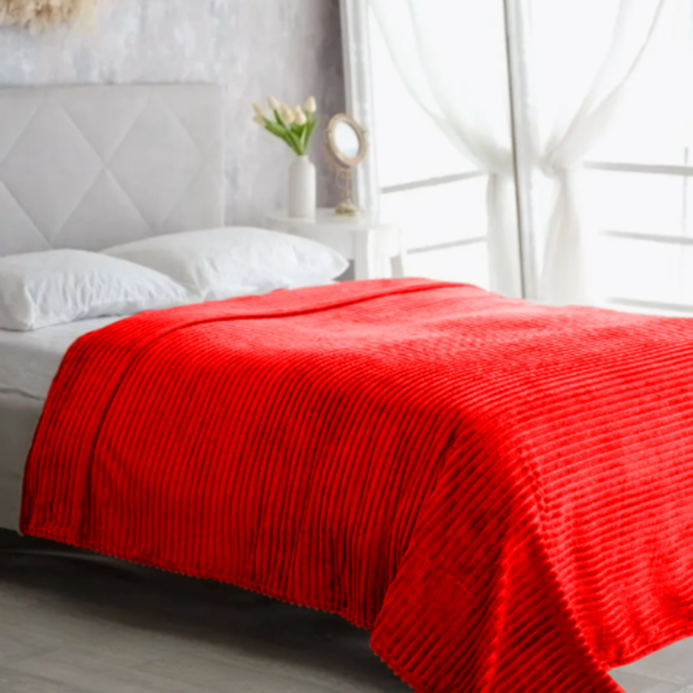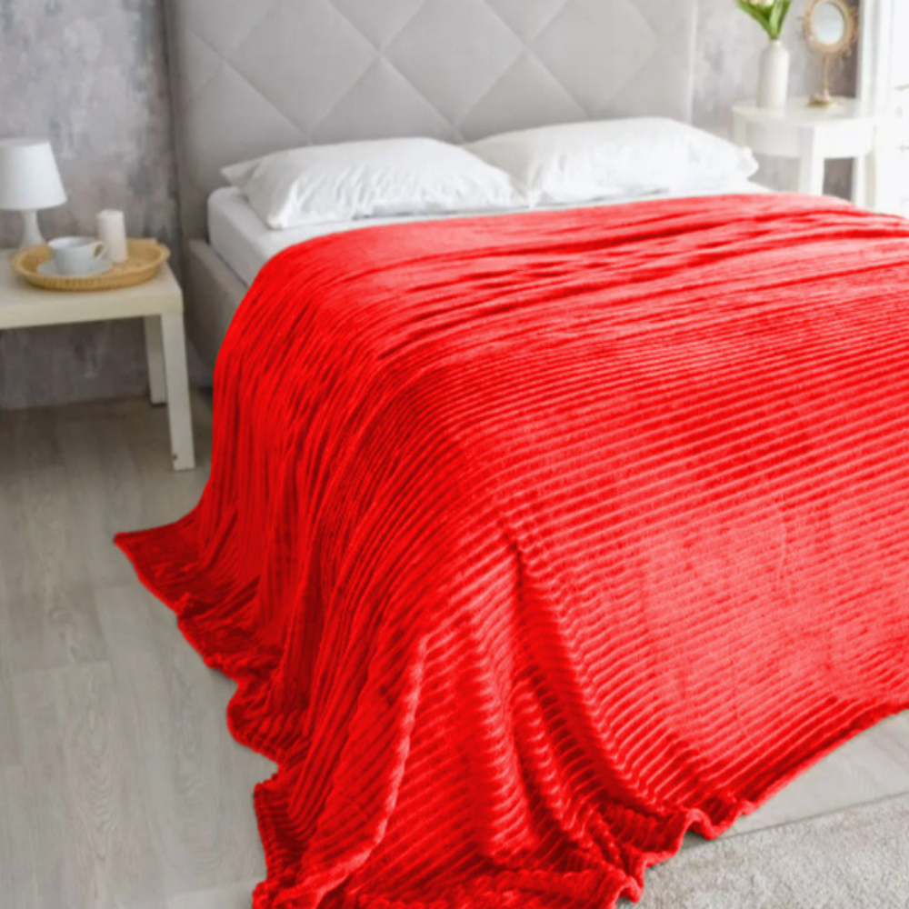 shumee Rdeča odeja 200x220 cm, reliefne črte, prevleka za posteljo, velika, elegantna zaščita