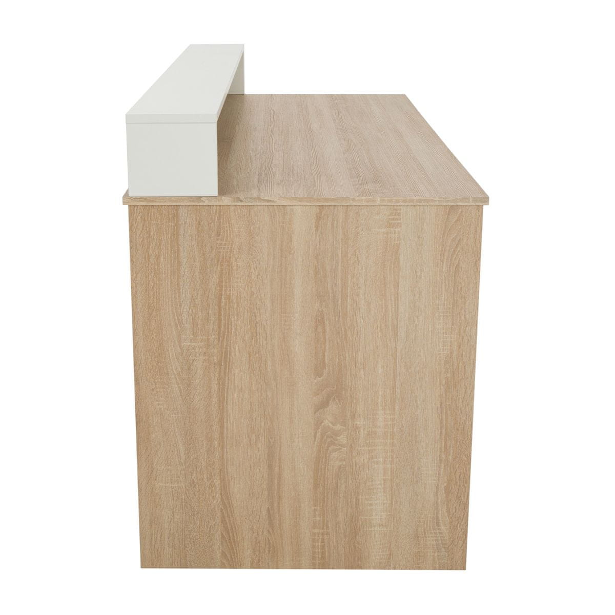 Igralna miza Tezro New v elegantni barvi hrasta sonoma in beli je idealna rešitev za vse, ki iščejo sodobno in funkcionalno notranje pohištvo. Ta pisalna miza je zasnovana tako, da nudi veliko prostora za delo in igro, saj meri 160 cm v širino, 69 cm v globino in 93,8 cm v višino.