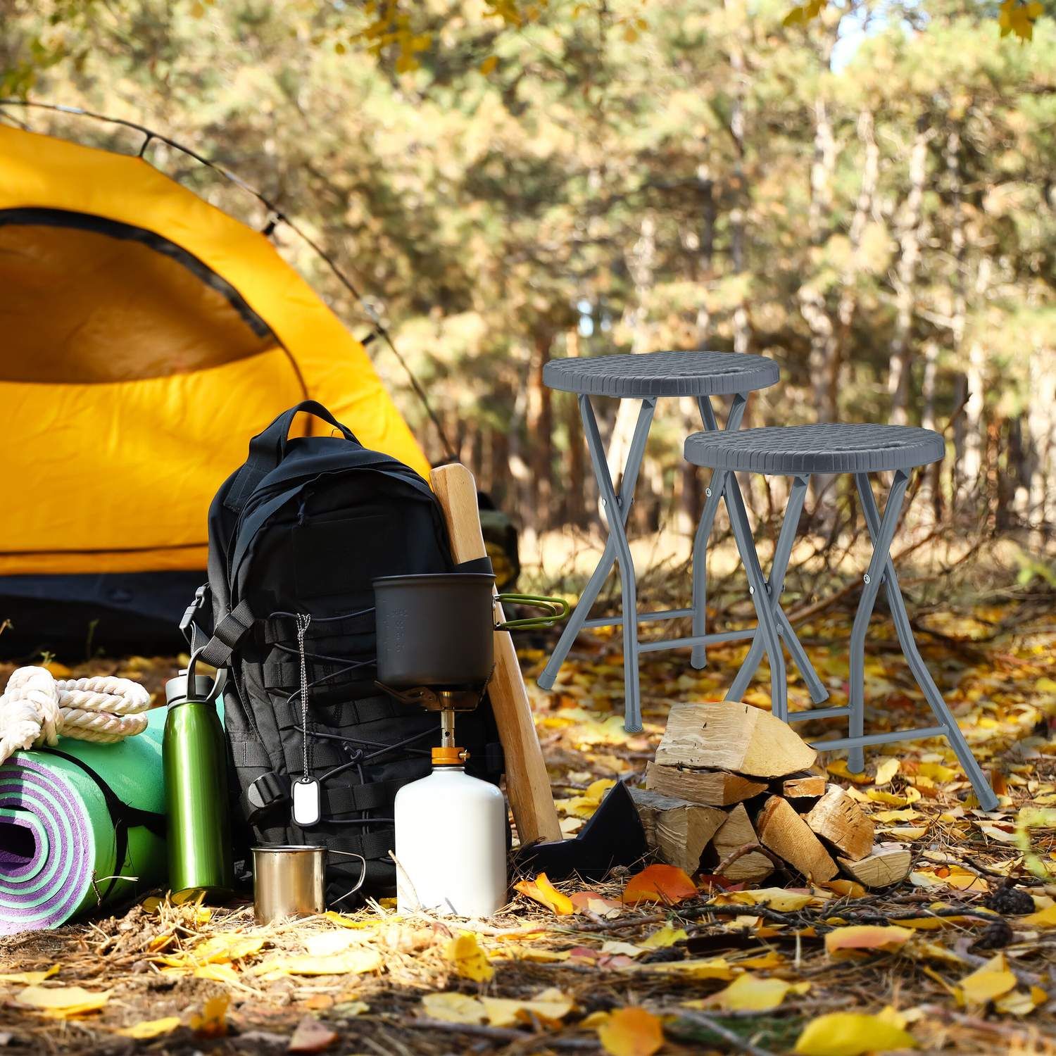 Sivi zložljivi tabureji iz ratana nudijo vsestransko sedenje za zunanje prostore in izboljšajo užitek na vrtu, balkonu ali terasi. Ti stolčki nudijo prilagodljive rešitve za sedenje za kampiranje ali domačo uporabo.