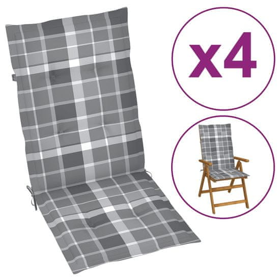 Vidaxl Blazine za vrtne stole 4 kosi sive karo 120x50x3 cm blago