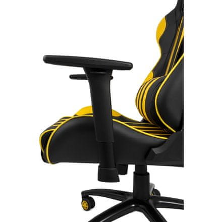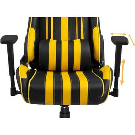 Tehnični parametri Glavni vzglavnik: Da Lumbalna opora: Da Odklon naslonjala: Da Odklon naslonjala: Da Top: PU usnje Ram: kovinski Nastavljiva višina sedeža [mm]: 70 Nosnost nosilca [kg]: Parametri Barva: črna, rumena Odbojna blazina: črna, rumena Odbojna blazina: črna, rumena Odbojna blazina za g Celoten opis